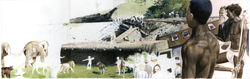 Watercolors and pencils sketches for, 'Tambo,' a 19th century circus movie. The paintings describe the circus train wreck. The circus owner, 'Robert Cunningham,' sees his aboriginal slaves led my, 'Tambo,' returning the escaped animals. The pencil sketches are of Tambo's mummified body and ghost discovered in the basement of an Ohio funeral home and finally the climatic circus fire.
